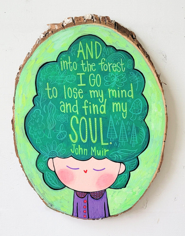 And Into the Forest I Go-John Muir Night Version 14" tall Hand Painted Wooden Round
