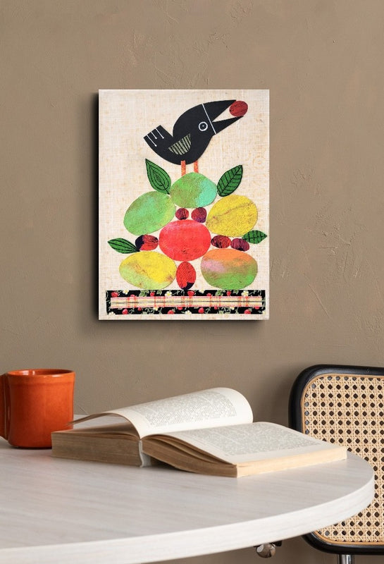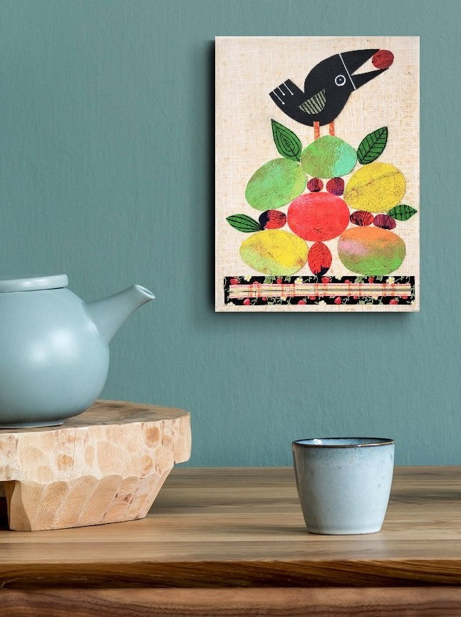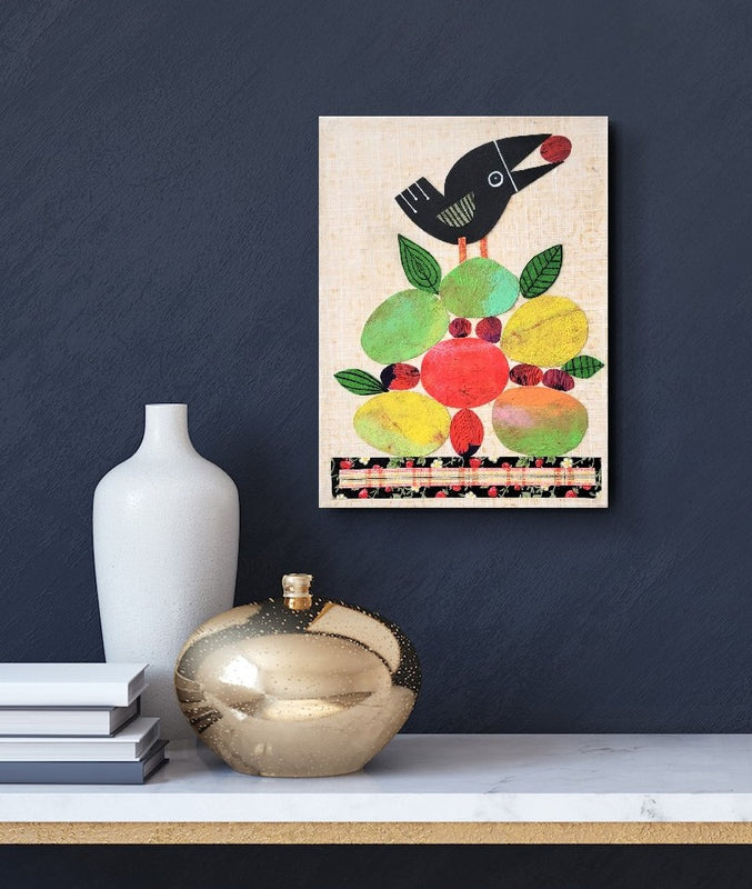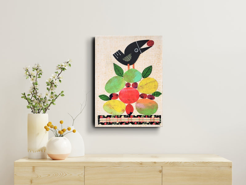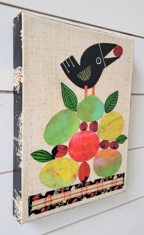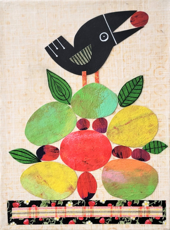 Crow With Fruit 9x12" Original Collage