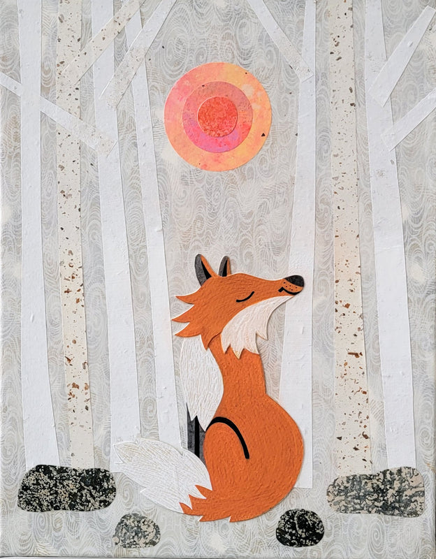 • The collage is sealed with matte medium and a final coat of artist grade UV filter varnish. This will protect your art from fading and is non-yellowing. The adhesive is polymer based and can take humidity from bathrooms. However, as with all art, do not hang your art in direct sunlight.