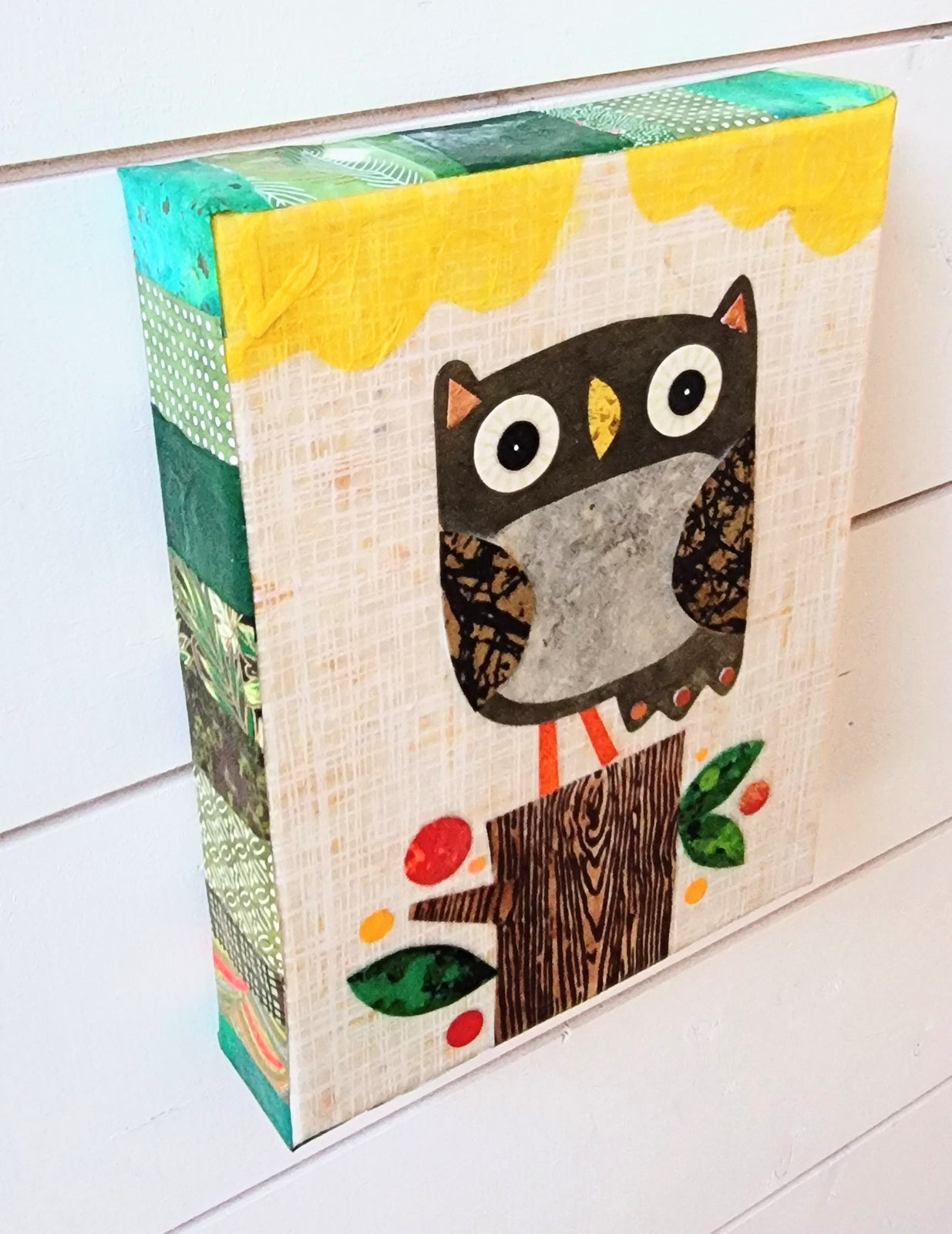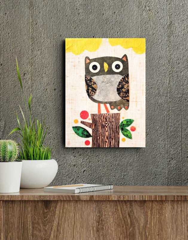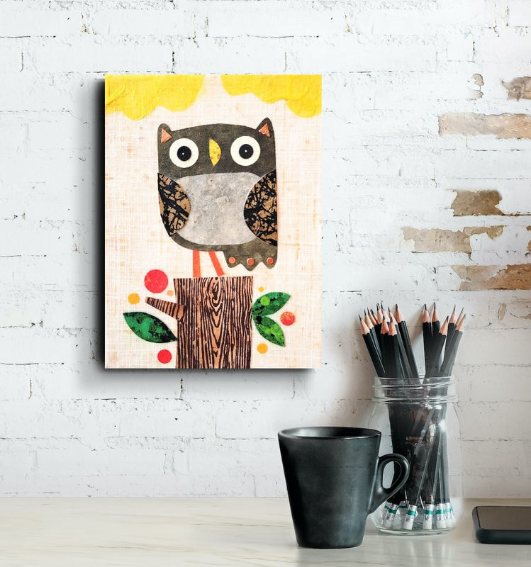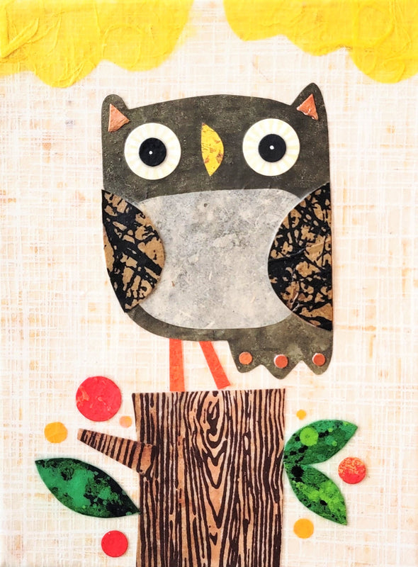 Owlet On a Stump 6x8" Original Collage